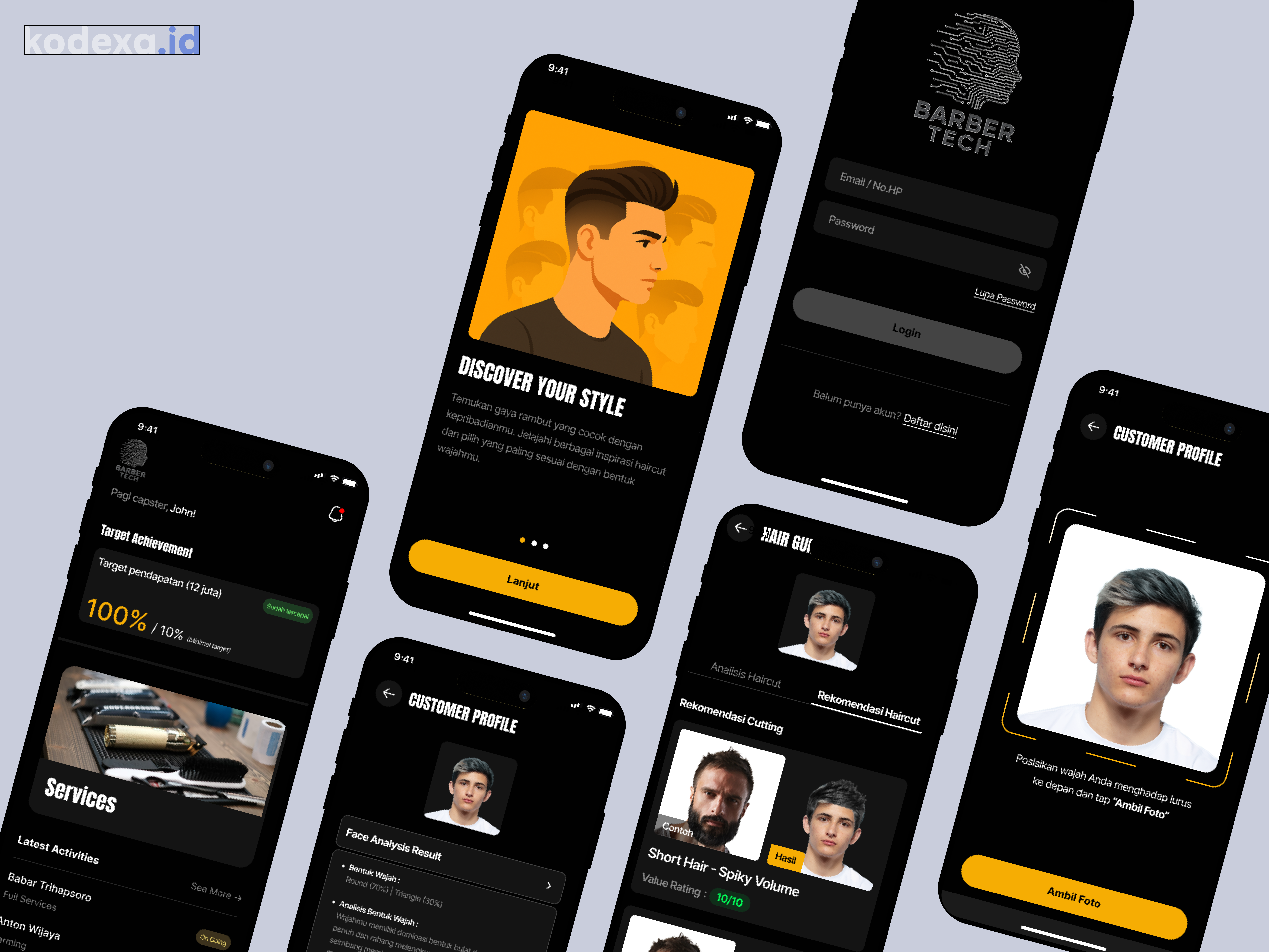 BarberTech adalah aplikasi berbasis AI yang membantu pelanggan menemukan gaya rambut yang paling cocok dengan bentuk wajah mereka. Dengan memanfaatkan analisis wajah dan sistem rekomendasi, pengguna cukup mengambil foto atau mengunggah gambar untuk mendapatkan inspirasi haircut yang sesuai. Tujuannya sederhana: membantu pelanggan datang ke barber dengan referensi yang jelas, sekaligus memudahkan barber memberikan hasil yang lebih presisi.